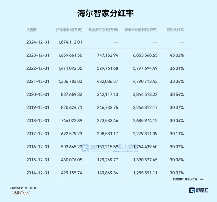 尽管海尔营收超过格力,但对比之下,不论过往是盈利还是分红,海尔一直都略逊格力一筹,海尔较低的分红率,也一直为人所诟病。