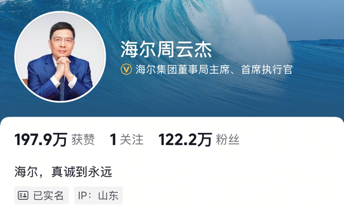 这次周云杰顺利出圈,社交媒体账号迅速涨粉122万,首条视频获赞近10万,甚至带动海尔高管一齐出道,实则是传统制造业向数字经济时代进军,迈入流量之争的举动之一。