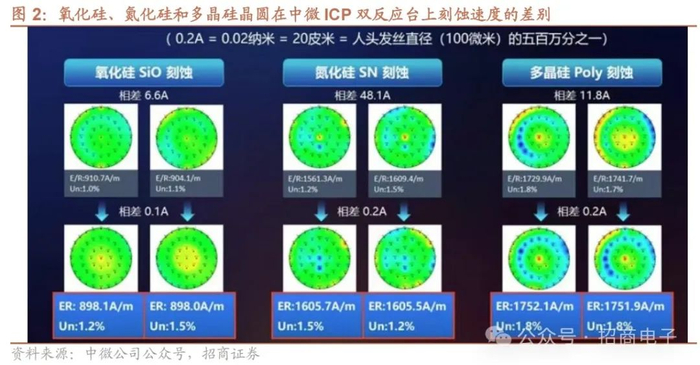 2)中微公司:公司宣布在等离子刻蚀技术实现重大突破——ICPP双反应台刻蚀机Primo Twin-Star反应台之间的刻蚀精度已达到0.2A(亚埃级)。该精度约等于硅原子直径2.5埃的十分之一,是人类头发丝平均直径100微米的500万分之一,这一刻蚀精度在氧化硅、氮化硅和多晶硅等薄膜的刻蚀工艺上,均得到了验证;公司还宣布其自主研发的12英寸晶圆边缘刻蚀设备Primo Halona正式发布,设备采用中微公司特色的双反应台设计,可灵活配置最多三个双反应台的反应腔,且每个反应腔均能同时加工两片晶圆,在保证较低生产成本的同时,满足晶圆边缘刻蚀的量产需求,从而实现更高的产出密度,提升生产效率;