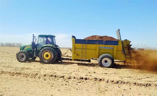 3月29日,在库伦旗六家子镇胡金稿村的农田里,农民驾驶着有机肥抛洒车正在施肥。