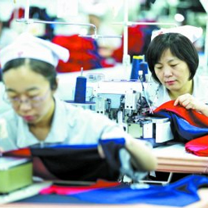 3月30日,山东省青岛市即墨区即发集团有限公司的员工在生产出口到海外的服装产品。 时值一季度末,各地企业一片繁忙景象,工人们加紧生产兑现订单,力争超额完成任务,冲刺“开门红”。 新华社发(梁孝鹏/摄)