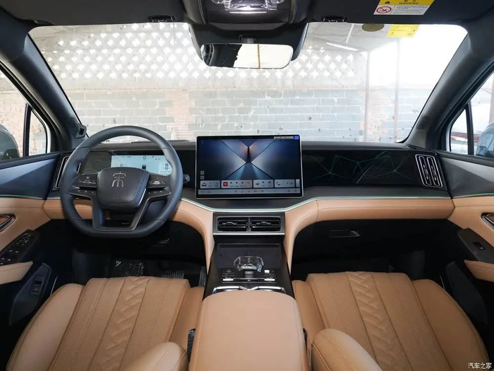 走进车内,10.25英寸液晶仪表以及悬浮式中控屏映入眼帘,根据配置不同可选12.8英寸屏幕和15.6英寸屏幕,还配备有平底式方向盘。