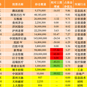 与易方达蓝筹精选较为一致,张坤同样在易方达优质精选中新入了顺丰控股;此外,京东(9618.HK)在2024年上半年被该基金卖出之后,又于2024年下半年重新买回,持股数量为350万股。
