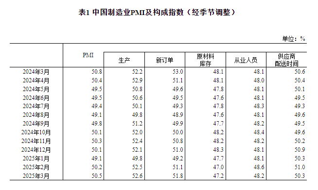 国家统计局:3月份PMI为50.5% 比上月上升0.3个百分点