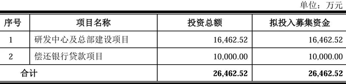 而此次信凯科技 IPO 计划募集资金 2.65 亿元,被明确划分为两大用途:1.65 亿元用于 " 研发中心及总部建设项目 ",1 亿元用于 " 偿还银行贷款项目 "。