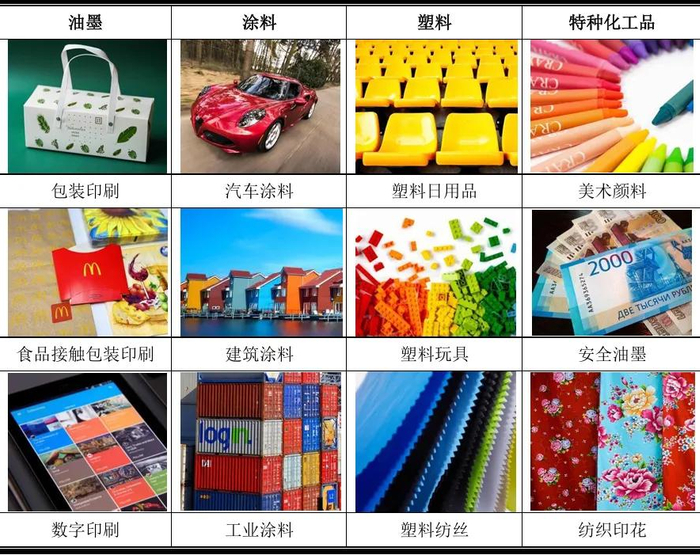 信凯科技(001335公司从事有机颜料等着色剂的产品开发、销售及服务,共拥有450多个规格的颜料产品;产品具有耐光、耐热、耐气候、耐迁移、环境友好和安全性能高的特点,主要应用于油墨、涂料塑料和特种化工品着色,最终广泛应用于包装印刷、食品接触包装印刷、数字印刷、出版印刷汽车涂料、建筑涂料、工业涂料、粉末涂料、塑料日用品、塑料玩具、塑料纺丝、工程塑料、美术颜料、安全油墨、纺织印花和农业应用等。