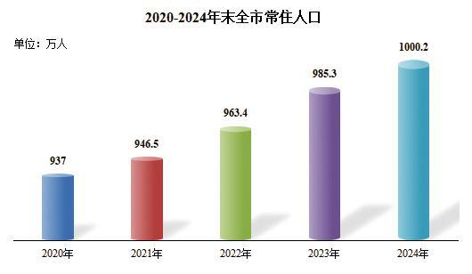年末全市户籍人口812.7万人,比上年末增加6.1万人。常住人口1000.2万人,增加14.9万人;常住人口城镇化率86.38%,提高0.83个百分点。全年出生人口7.9万人,出生率7.98‰;死亡人口6.1万人,死亡率6.15‰;自然增长率1.83‰,比上年提高0.01个千分点。