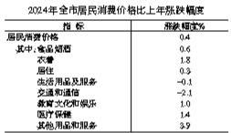 全年居民消费价格比上年上涨0.4%,其中食品烟酒价格上涨0.6%。