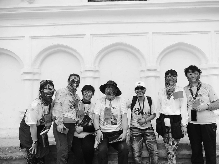 老年团游客在尼泊尔体验洒红节。