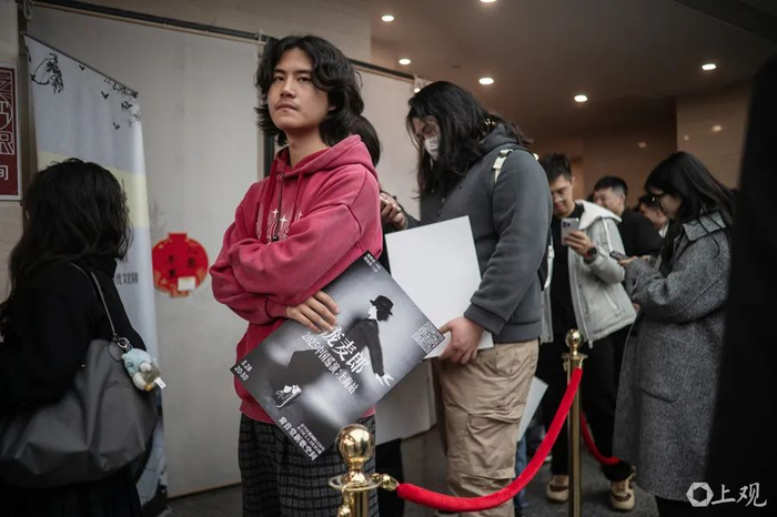 拿到签名的人们依然在大厅里驻足。他们和站在长队中并不相识的歌迷热烈地聊天,他们讨论庞麦郎的歌词带给自己的感动,甚至有人从庞麦郎的音乐延伸到了左小祖咒。在旁边人善意的提醒下,那位提到左小祖咒的年轻人又赶紧自己找补了一句:“当然当然,左小跟他的确不是一回事。”