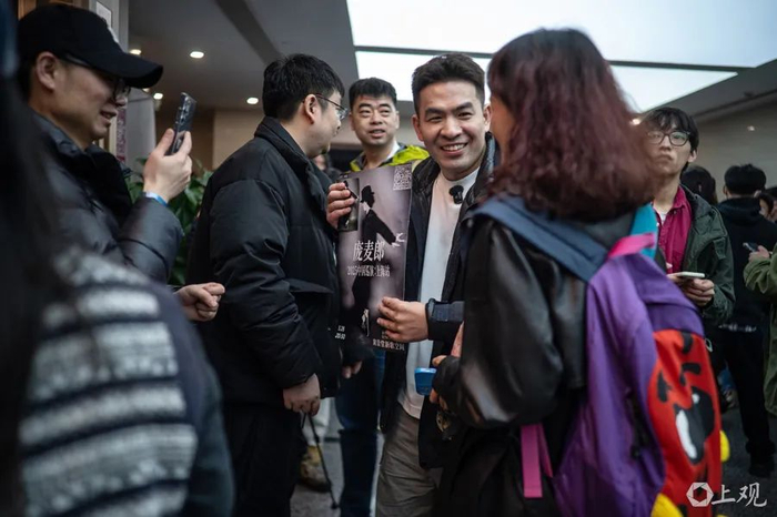 演出后庞麦郎的签名合影环节留住了现场的大部分人。育音堂的工作人员不得不用话筒广而告之——没有事先购买海报的观众是无法获得签名的。而39元一张的海报在演唱会开始之前就已经被抢购一空了。