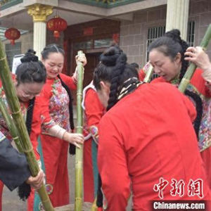 中新网江西宜黄3月31日电 (巫发阳 刘伦花)“何坊村的村民很热情,制作的糍粑和清明果很好吃,舞龙和禾杠舞表演也很精彩,这场‘三月三’活动非常棒。”3月31日,农历三月初三,走进江西抚州市宜黄县中港镇何坊畲族村,畲族、汉族村民齐聚一堂,打糍粑、做清明果、蒸乌米饭、舞龙表演、禾杠舞表演,数百名村民共同庆祝“三月三”。
