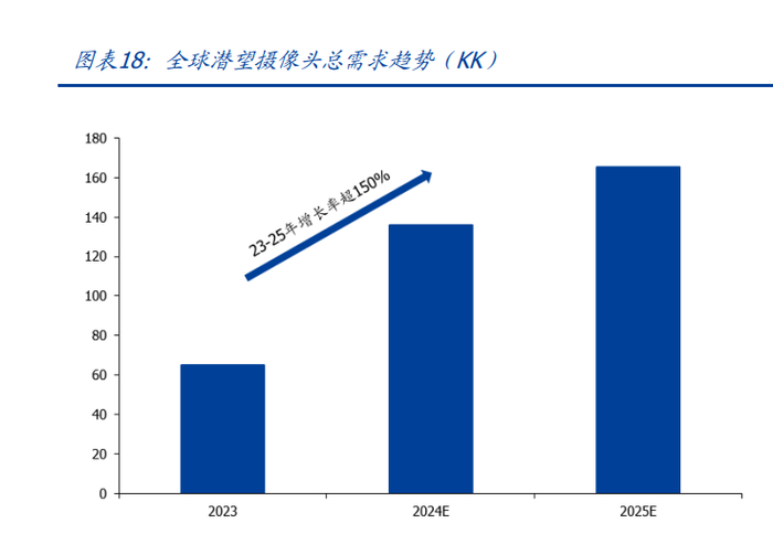 高价值量产品出货占比提升,打开量价齐升局面。舜宇 24H1 手机摄像模组出货量共计 2.89 亿颗,同比增长 13.5%,其中潜望模组和大像面模组(1/1.5 英寸以上)的整体出 货量为 1.5 万颗,同比增长 66.5%。丘钛 2024 年手机摄像模组出货量为 4.2 亿颗,同 比增长 15%,经历了两年出货量下滑后恢复增长。其中价值量更大的 32MP 以上手机模 组出货量 2.1 亿颗,占比达 50%为公司历年来同期最高,打开量价齐升的有利局面。 2025 年 1 月,丘钛 32MP 以上手机摄像模组出货量 1893 万颗,环比增长 4%,同比增 长 3%,占比进一步提升至 55%,中高端市场显示出良好的增长态势及产品竞争力。