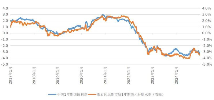境内远期外汇市场美元升贴水率与中美利差