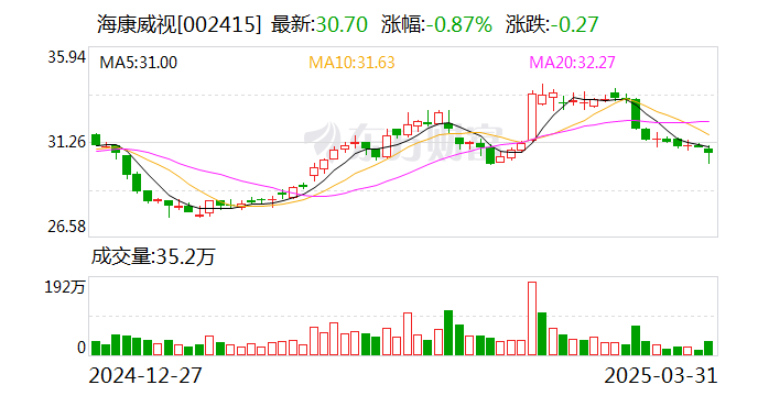 海康威视(002415)发布公告,截至2025年3月31日,公司通过集中竞价交易方式累计回购4050万股,占总股本的0.4387%,回购总金额为12.35亿元,回购价格区间为27.53元/股至32.7元/股。