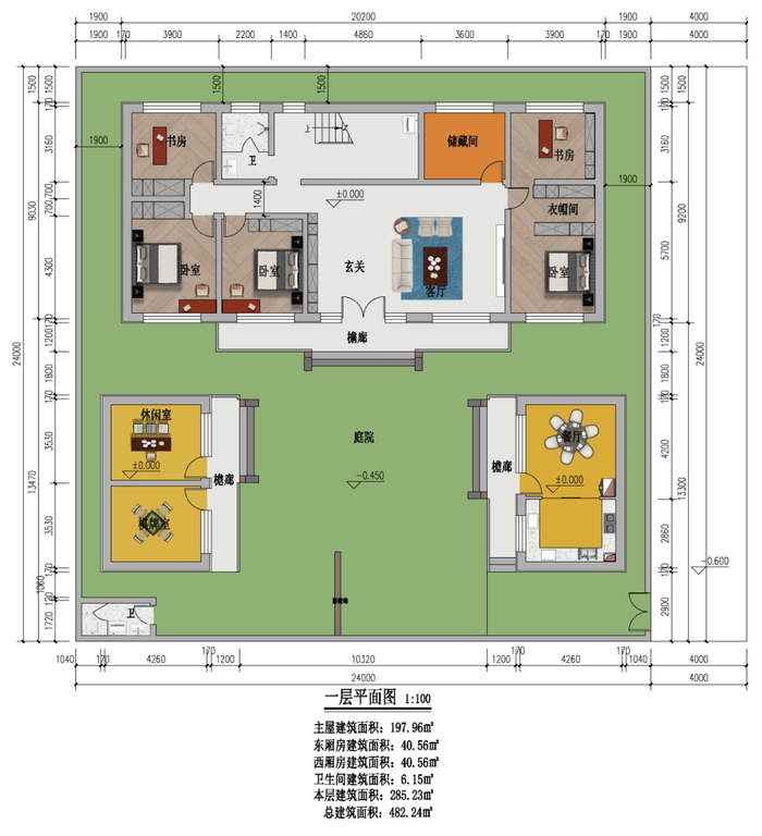 建筑情况:设7室 2厅 3卫 1厨 1阳台 2客厅 1棋牌室 1休闲室 4书房 1玄关 1餐厅