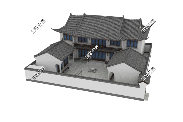 三重院落围合布局,让生活空间围绕院子这个中心来展开,无论一楼的餐客厅、卧室,还是二楼的卧室,都可以和庭院进行空间互动。
