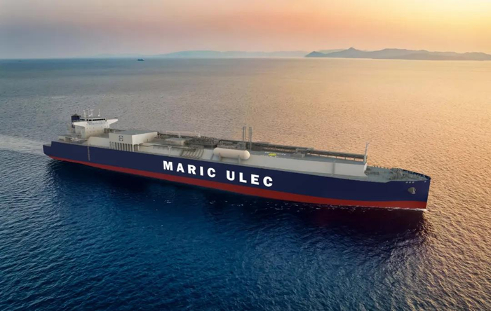 在3月25日开幕的新加坡海事周2025(Singapore Maritime Week 2025)上,中国船舶集团有限公司旗下中国船舶及海洋工程设计研究院(MARIC)自主研发设计的15.5万立方智能液化乙烷运输船(ULEC)绿色智能精品船型获BV船级社颁发的原则性认可(AiP)证书。