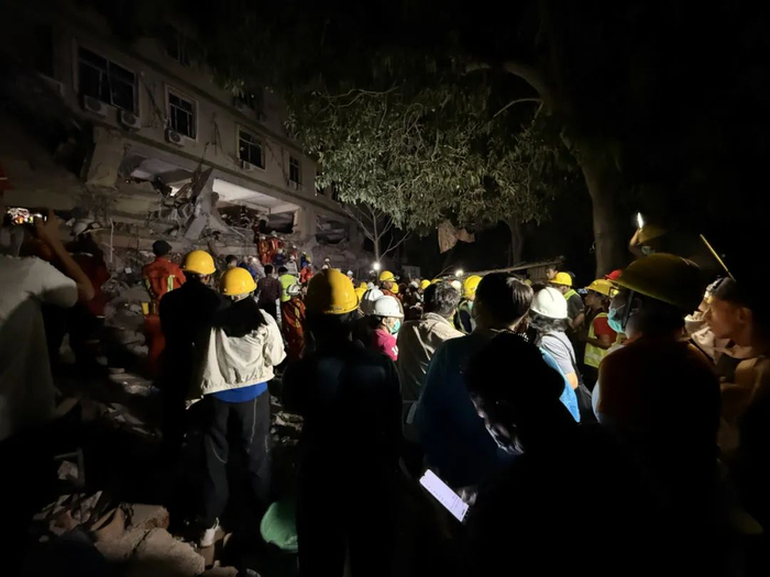 “一看就知道,肯定会有很多死伤,太严重了。”李建军说,居民们告诉他,当时楼瞬间垮下来,有人用中文、缅语大喊救命,但余震不停,没人敢上前。天已经黑了,手电筒亮着,有人忍不住了凑上去,立刻被旁边的人劝住,几百号人围在废墟旁,不知道可以做什么,只有等待。