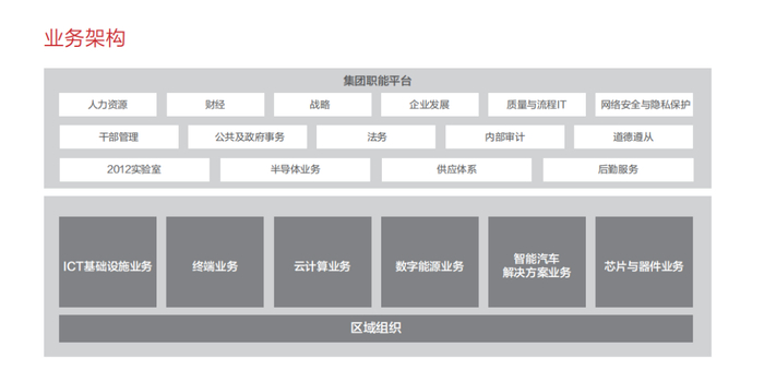 同时,公司架构上值得注意的是,华为在集团职能平台中新增了“半导体业务”,由海思升级而来,和2012实验室、供应体系等并列。对应的在区域组织,也就是核心六大产业上,将原先海思更名为“芯片与器件业务”,从中能看到华为的最新布局和技术实力。
