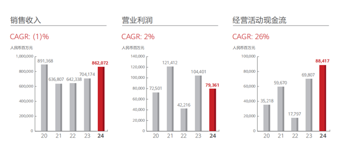 对比来看,2024年营收同比增长22.42%,2023年为7042亿元,核心板块上终端业务持续恢复增长;净利润则同比减少28.05%,2023年为870亿元。而2023年净利润颇高的一个原因是,华为处置子公司及业务形成的金融工具的公允价值变动为558.53亿元,所以对比的基数较高。