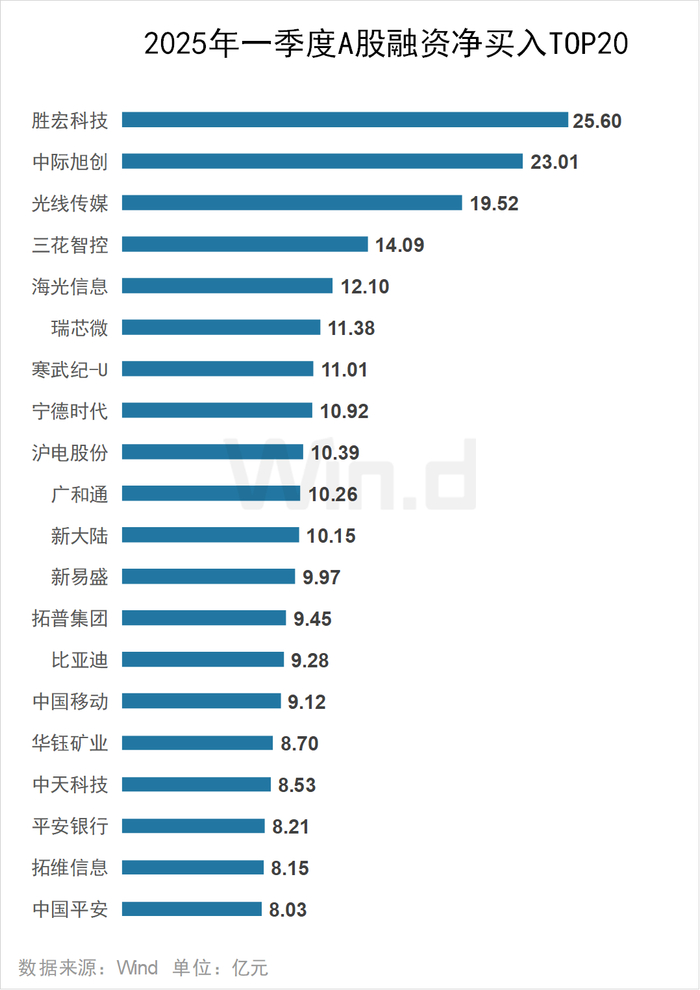 2025年一季度胜宏科技获杠杆资金大幅加仓,融资净买入额达25.6亿元居首;中际旭创、光线传媒分别获融资净买入23.01亿元、19.52亿元。