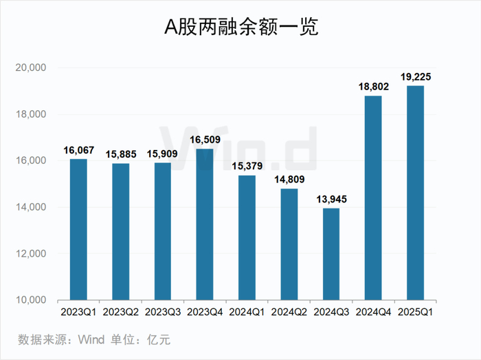 截至2025年一季度末,A股两融余额报19225亿元,较2024年末上升423亿元。