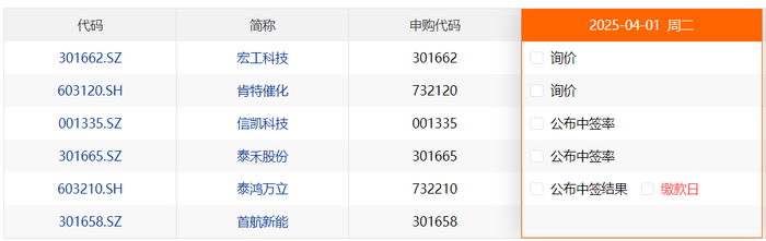 4月1日新股提示:泰鸿万立中签号出炉 信凯科技、泰禾股份公布中签率