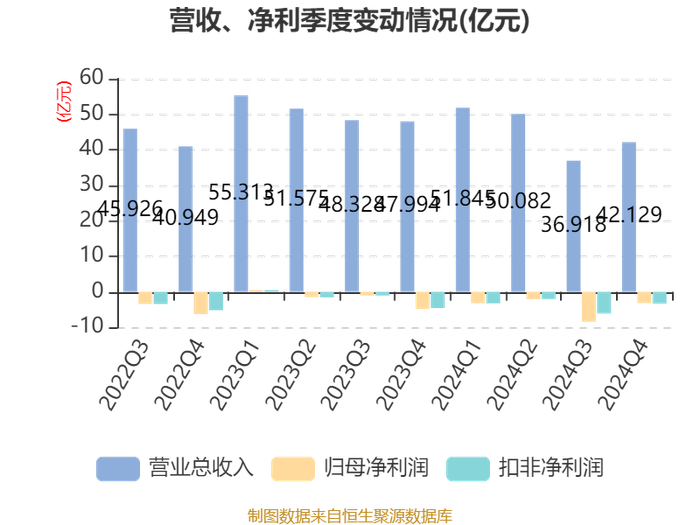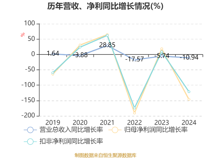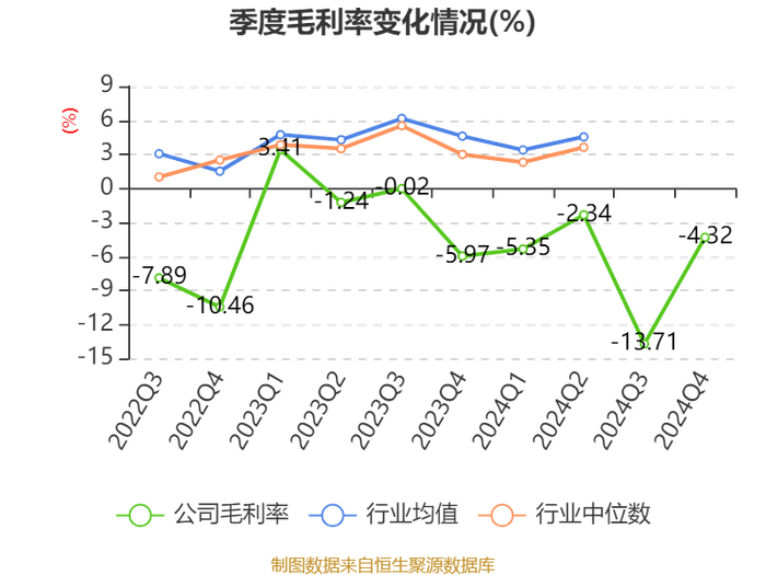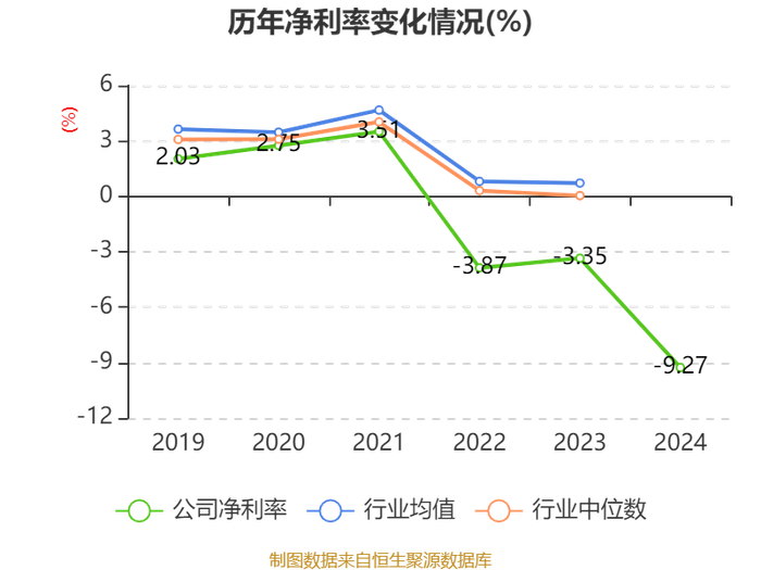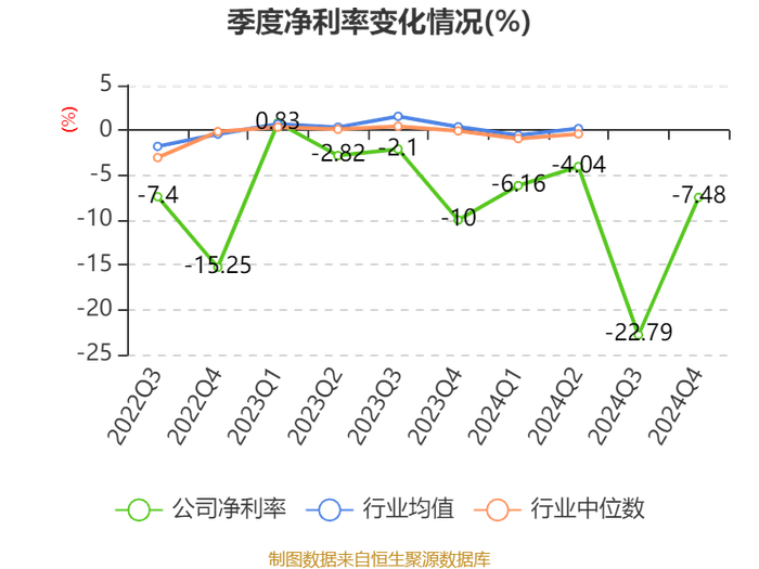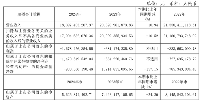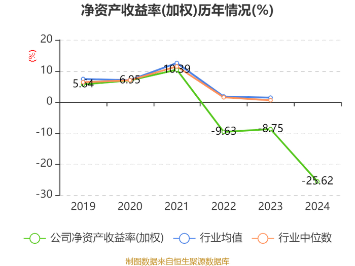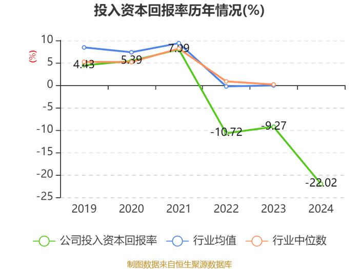 数据显示,2024年公司加权平均净资产收益率为-25.62%,较上年同期下降16.87个百分点。公司2024年投入资本回报率为-22.02%,较上年同期下降12.75个百分点。