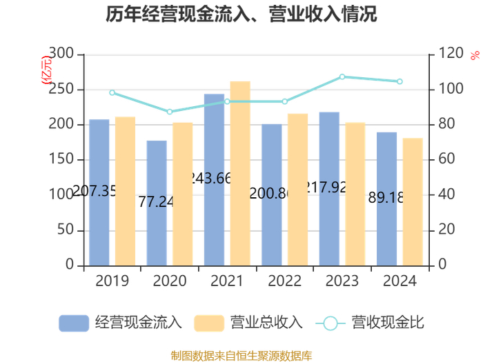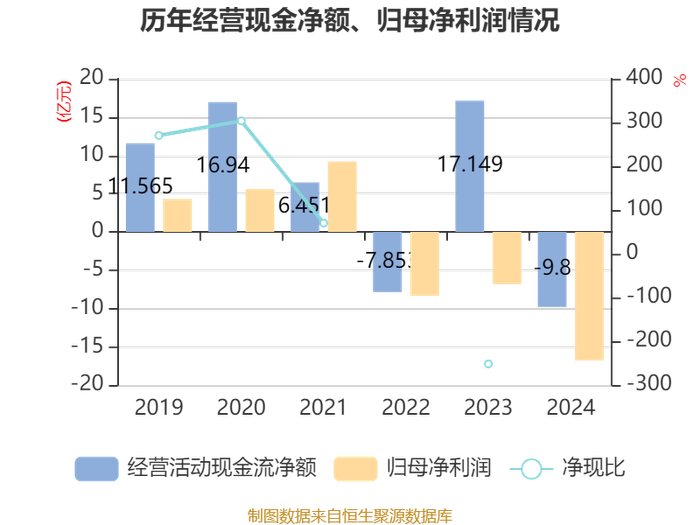 截至2024年,公司经营活动现金流净额为-9.8亿元,同比减少26.95亿元;筹资活动现金流净额10.25亿元,同比增加7.85亿元;投资活动现金流净额-8.98亿元,上年同期为-5.84亿元。