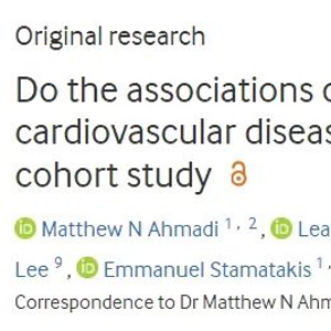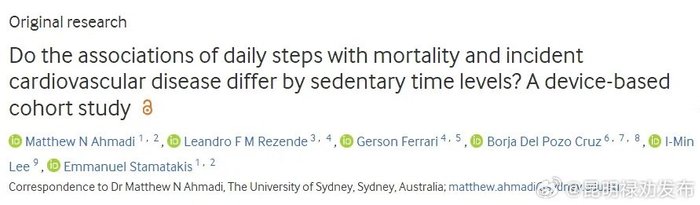 研究人员分析了英国生物银行数据库中72174名参与者,平均年龄为61岁,女性占58%,记录参与者每日步数和久坐时间的数据。在平均7年的随访期间,共记录了1633人死亡和6190起心血管事件。