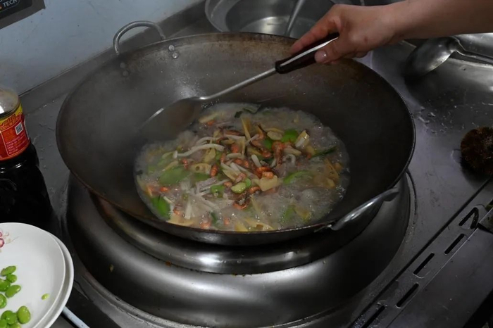 灶台前,大厨掌握着火候秘语。工友们说,这口酥嫩里能尝到滩涂上掠过的海风。