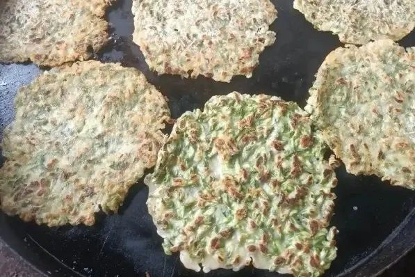 “槐花黄,下灶忙”。徐州500千伏姚湖变设备改造工程项目部的厨师踩着晨露,在村中采摘半开的洋槐花,再将滩涂特产的青壳鸭蛋打散,裹住嫩瓣,铁锅烙出两面焦黄。老辈人说这是“穷人的龙舌饼”。