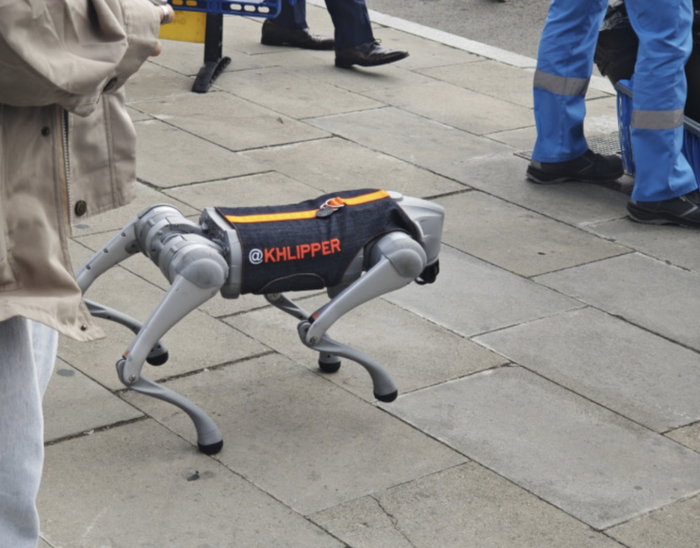 “这是一款2003年7月上市的四足机器狗,搭载了宇树科技自研的4D激光雷达,具有360度*90度的超广角全地形感知能力,最小探测距离可达0.05米,感知系统提升200%,通过AI训练后可以理解主人的意图,结合传感器信息更好地理解并作出决策。”