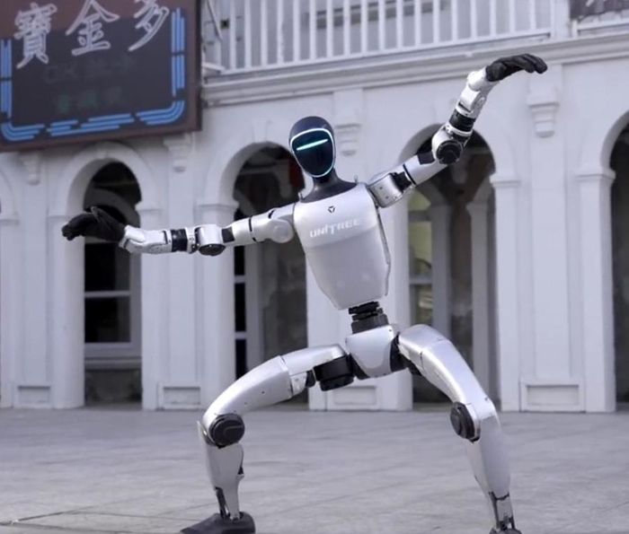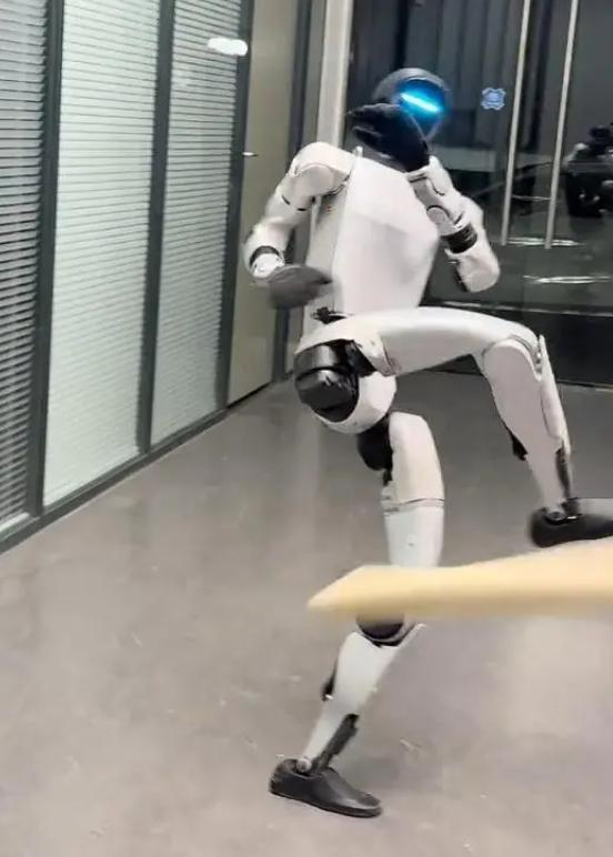 视频中,平躺在地的机器人在短短4秒内爆发式起身,展示了极佳的“核心力量”,G1还表演了格斗扫腿、竞技太极等动作,并扛住了“偷袭者”飞踹后腰。