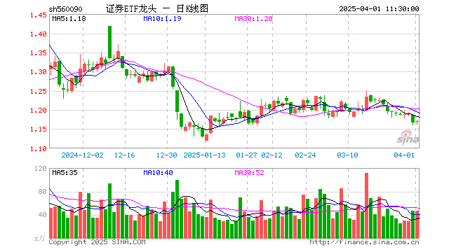 证券ETF龙头(560090)涨0.43%,半日成交额5395.10万元