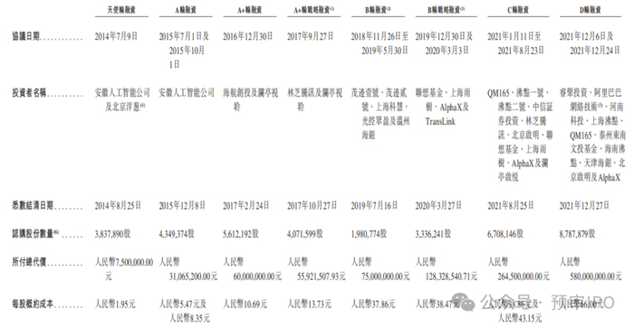 递表前,沸点资本持股10.70%,为第一大外部股东;安徽人工智能公司持股9.57%;腾讯、启明创投、联想、阿里巴巴、携程则分别持股9.09%、5.39%、4.22%、2.94%及2.69%。其中,早期投资者安徽人工智能公司已持股超10年,腾讯、联想入股5年未退出。