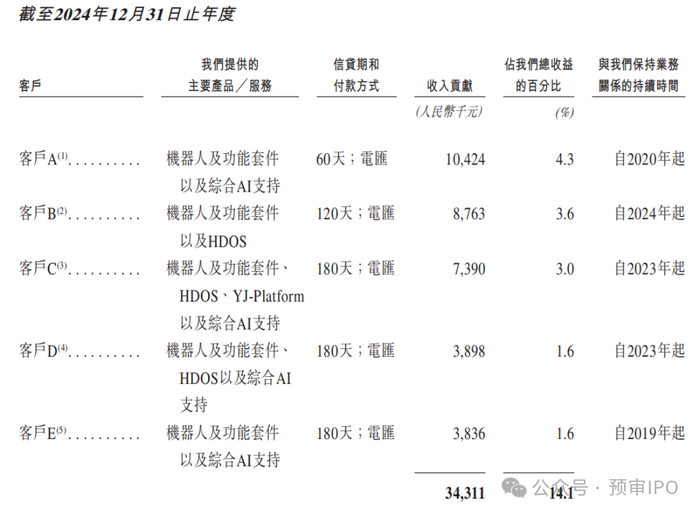 但云迹科技的客户较为分散,2024年,公司前五大客户贡献收入占比为14.1%,而每个客户的销售收入占比均不超过5%,这也在一定程度上说明了云迹科技缺少核心实力客户。