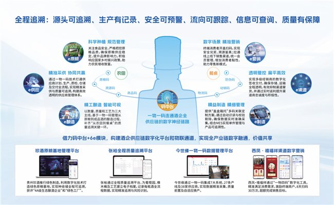 海普智联相关技术负责人介绍:“‘码中台+ 6e模块’靠一物一码打破了酒企上下游数据壁垒,轻松连通各个业务端侧系统,实现全供应链的数据融通与价值共享,助力酒企提质降本增效,推动酒业向数字化、智能化转型升级。”目前,该平台已在40多家酒企成功应用,并取得显著成效。