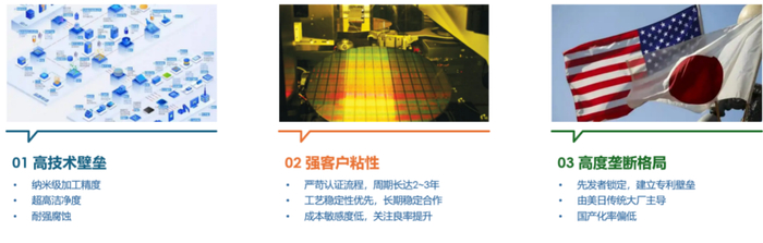 半导体零部件是一个门槛较高、强者恒强的赛道。国内相关企业起步较晚,根基较浅,往往在某些单一领域实现突破,而在全产业链条上的布局与产品线丰富程度上,与经营许久的国际一线供应商相比存在较大差距。尽管庞大的国内需求能够有效促进企业加快投资实现快速发展,但落实到具体操作上,仍不可避免遇到诸如美日企业先发优势、专利占位,客户导入周期过长、新进入者难以打开局面而错失窗口期等种种阻碍。