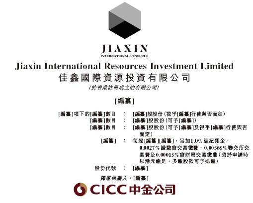 江西铜业、恒兆、中国铁建持股的「佳鑫国际」,更新IPO招股书,或很快香港上市,中金独家保荐