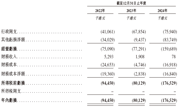 招股书显示,在过去的2022年、2023年和2024年,佳鑫国际未有营业收入,相应的净亏损分别为9445.0万、8012.9万和1.77亿港元。