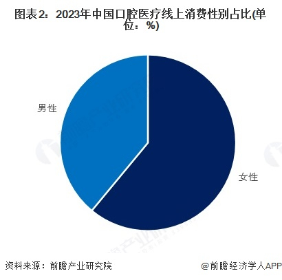 调研数据显示,2023年中国口腔医疗消费女性比例约61%,男性比例约39%。体现了口腔医疗服务行业的“医美”、“消费”属性,女性通常对口腔美学的需求更高。