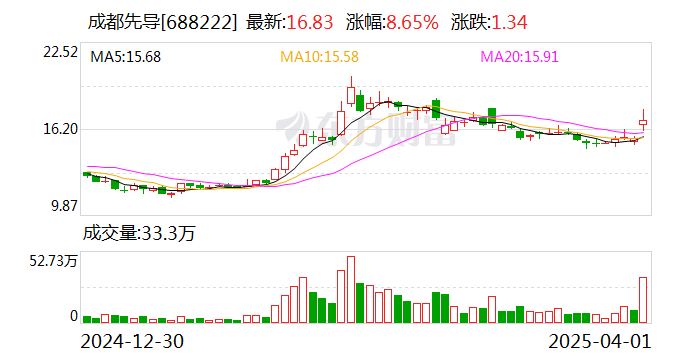 二级市场方面,4月1日截至发稿,成都先导股价报16.83元/股,较发行价20.52元/股仍处“破发”状态,但当日上涨8.65%,换手率为7.86%,总市值为67.43亿。