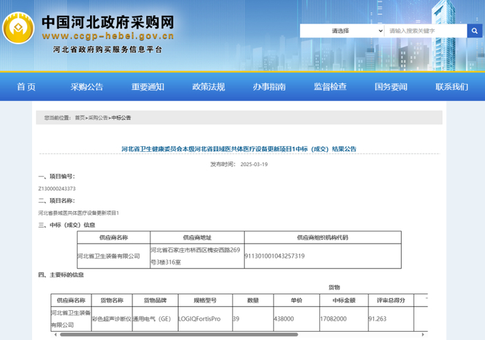 此次超声设备采购项目的中标结果,不仅满足了采购方对设备数量和质量的要求,更在资金节约方面取得了突出成绩,实现资金的最大化利用。此次中标的两家企业,一家是国产超声的龙头企业开立医疗,另外一家是国际医学影像巨头GE医疗,但是价格均有了七成左右的降幅。根据2024年的中标数据,GE医疗的LOGIQ Fortis Pro超声设备的单台中标价格在不同项目中有所差异,以下是部分具体的中标价格信息: