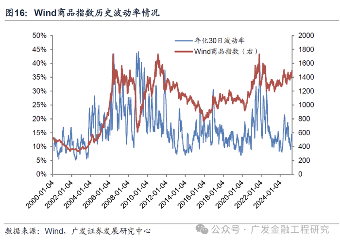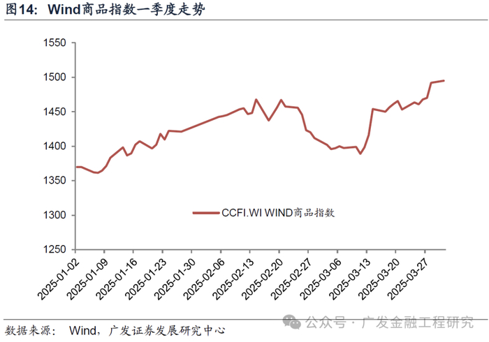 再来看一下活跃商品指数的横截面波动率,统计窗口为2025年一季度,波动率按照每日涨跌幅测算,如下图所示。