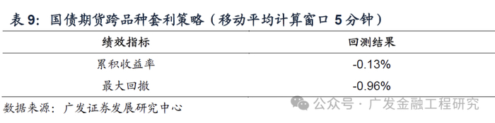 接下来讨论跨品种套利策略的表现。5年期与10年期国债期货具有良好的相关性,适合于跨品种的统计套利策略。该策略假设两个品种标的的价差具有均值回复性质,即当价差偏离其历史均值幅度过大时便会逐渐回复到平均水平。当价差拉大时,套利者反向做多或做空价差,从而期望获得均值回复后的利润。
