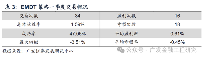 一季度EMDT持续盈利,策略单季度收益率1.59%。