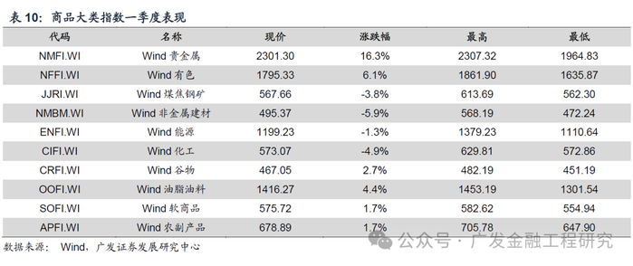 一季度大宗商品整体上涨,其中金属领涨,农产品反弹,能化和黑色板块仍低位震荡。