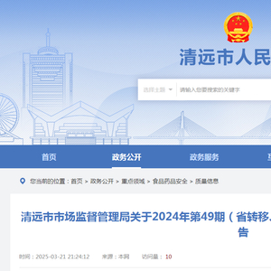 清远市市场监督管理局关于2024年第49期(省转移、市级任务)食品安全监督抽检信息的通告